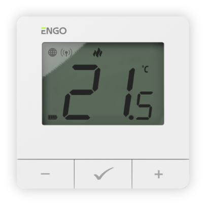 Bezprzewodowy zestaw służący do sterowania standardowymi urządzeniami grzewczymi (np. kotłami gazowymi). Cechuje go: prostota wykonania, intuicyjna obsługa z poziomu klawiszy oraz duży i czytelny wyświetlacz. Wbudowany moduł Wi-Fi umożliwia łatwą i szybką konfigurację urządzenia w aplikacji mobilnej ENGO Smart. Regulator może być udostępniany wielu użytkownikom, ma funkcję tworzenia harmonogramów oraz blokadę PIN. Fabrycznie sparowany i przygotowany do pracy.