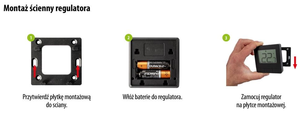 - w zestawie z podstawką, która umożliwia ustawienie regulatora na półce
