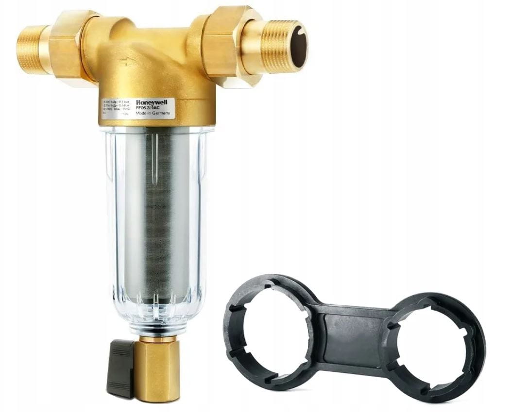 Filtr Honeywell FF06 należy do filtrów z tzw. opłukiwaniem siatki filtracyjnej. Filtr ten zapewnia ciągłe filtrowanie wody zatrzymując na siatce filtracyjnej zanieczyszczenia tj. rdzę, piasek, strzępy konopi itp. Zanieczyszczenia gromadzone są na dnie przezroczystej obudowy i mogą być łatwo usunięte przez chwilowe otwarcie zaworu kulowego.