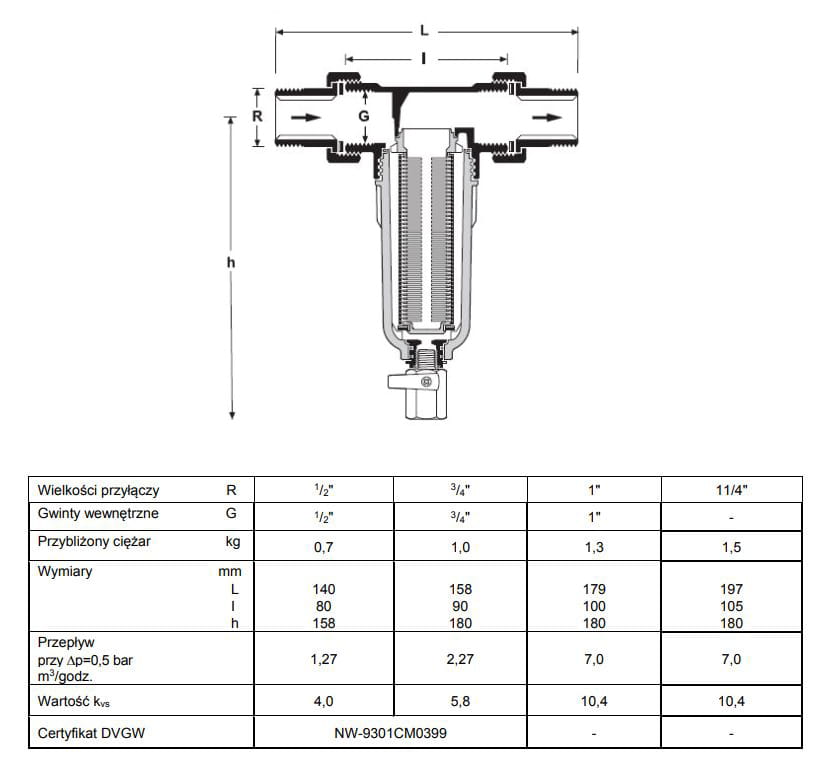 - Filtr certyfikowany wg DIN/DVGW