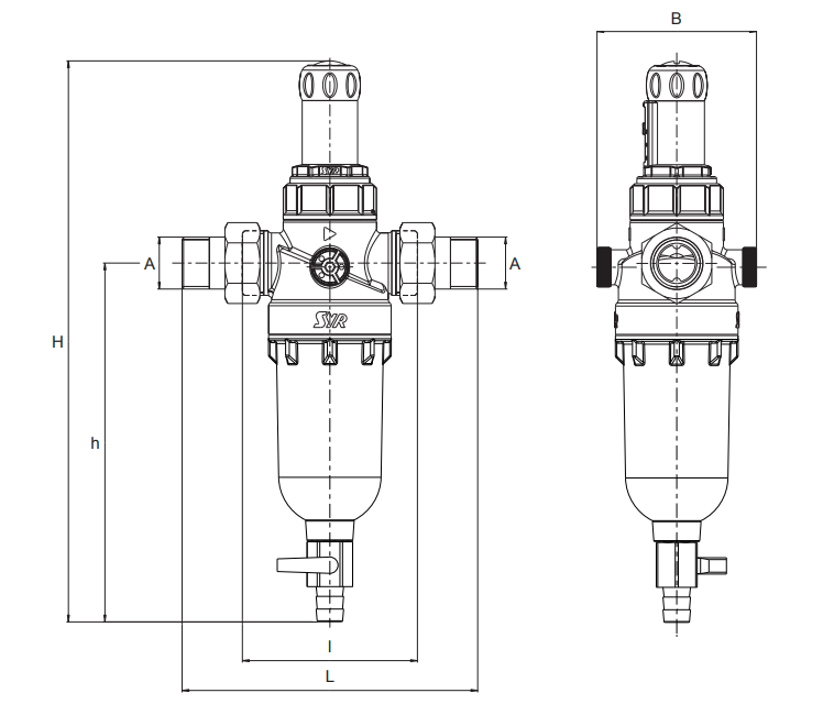 Filtr z reduktor ciśnienia SYR DN20 RATIO DFR z płukaniem wstecznym