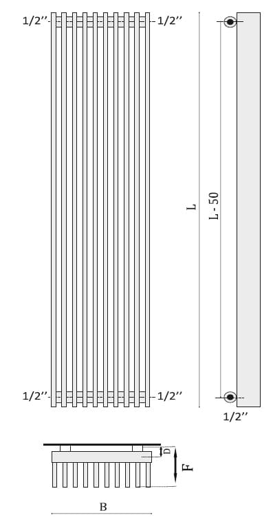 Podłączenie: boczne - istnieje możliwość wykonania podłączenia od dołu z rozstawem 50 mm (zasilanie dolne centralne, prawe lub lewe - dopłata 75 zł)