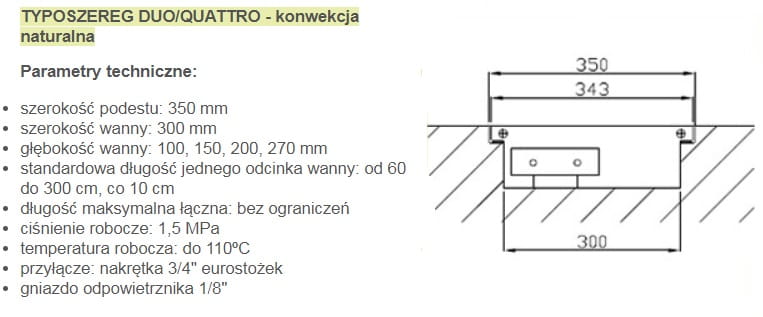Grzejnik kanałowy REGULUS Duo 100/350/1500