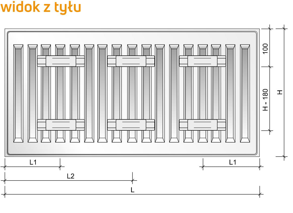 Wyposażenie standardowe: osłona górna (grill), dwie osłony boczne, zawieszenia, korek, odpowietrznik.