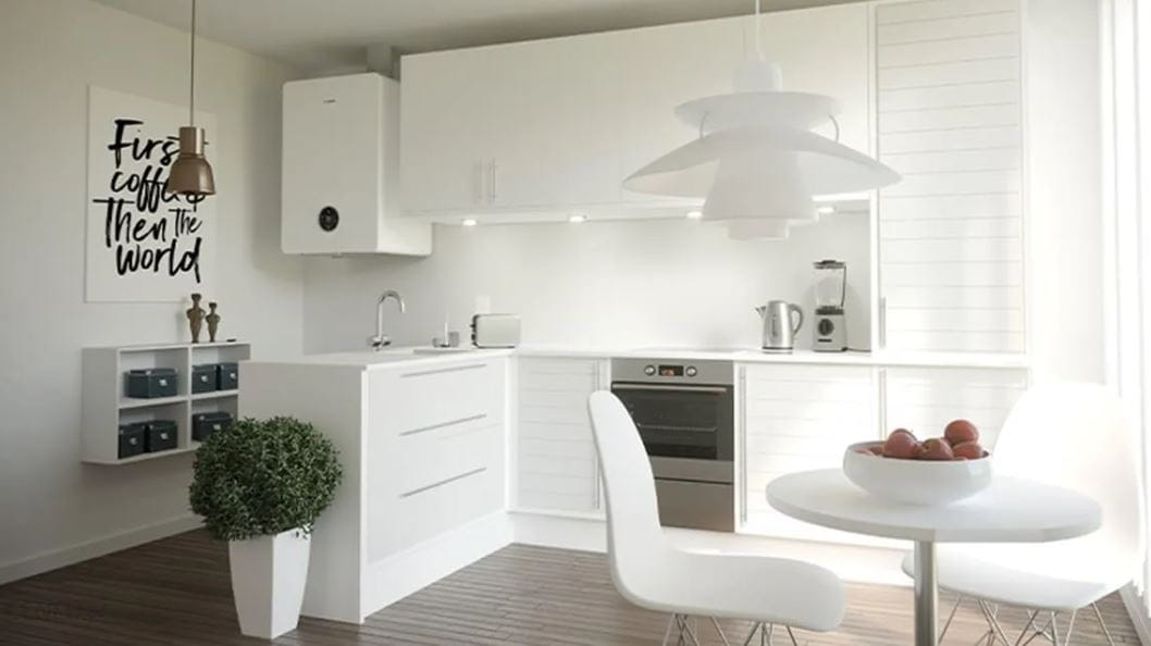- Gładkie białe fronty i kolorowy wyświetlacz LCD umożliwiają instalację urządzenia również w pomieszczeniach mieszkalnych.