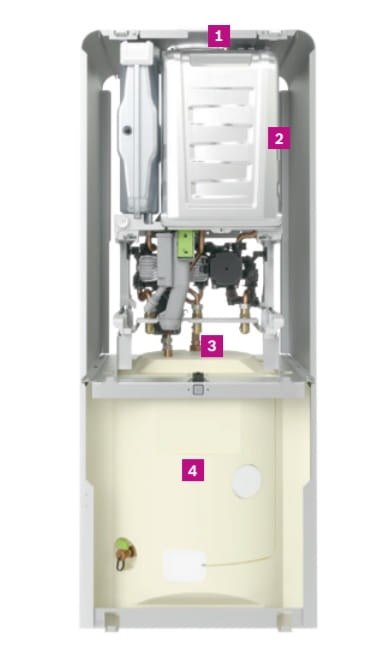 Kocioł stojący BOSCH CONDENS GC5300iW 24/120 (24 kW) z zasobnikiem wężownicowym 111 l (c.o 3,0 - 25,4 kW; c.w.u. 3,0 - 30,0 c.w.u).