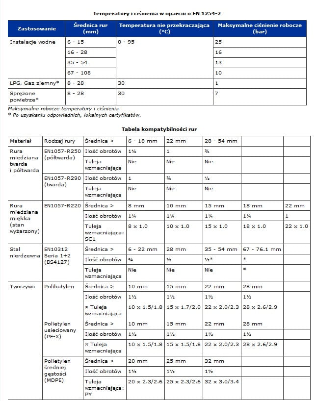 Kształtki znajdują szerokie zastosowanie do łączenia rur miedzianych wykonanych zgodnie z normą PN-EN 1057 i innymi normami, w tym z ISO 274. Wykorzystywane są także do łączenia rur ze stali węglowej, stali nierdzewnej i wielu rodzajów rur z tworzyw sztucznych w tym z polietylenu (PE-X) i polibutylenu (PB) o odpowiednich średnicach zewnętrznych.