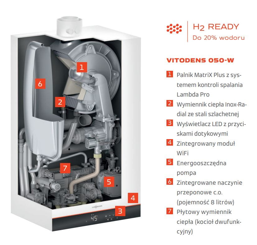 Wykorzystanie wodoru – jako nowego, dodatkowego źródła energii następuje stopniowo. Nowoczesne gazowe kotły kondensacyjne Vitodens przystosowane są do spalania gazu ziemnego z domieszką do 20% wodoru.