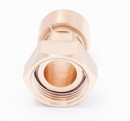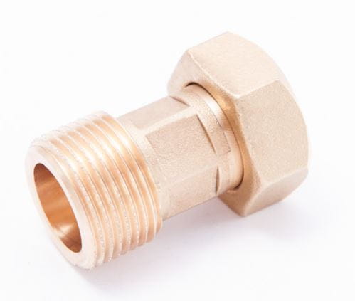 Półśrubunek mosiężny z obrotową nakrętką 1". Polecany szczególnie przy montażu urządzeń grzewczych (kotłów).
