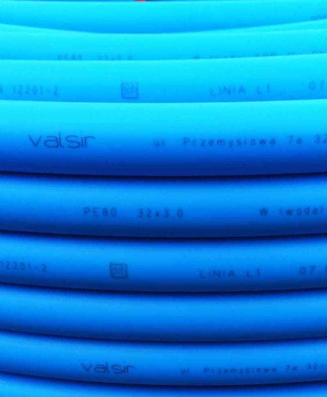 PE – ciśnieniowe rury polietylenowe o średnicy 32 mm.