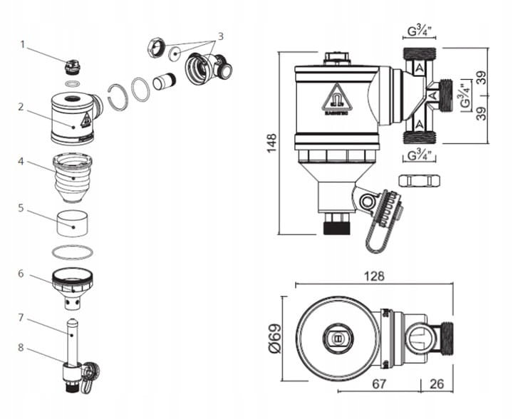 Separator magnetyczny z filtrem i osadnikiem Calido 3/4"