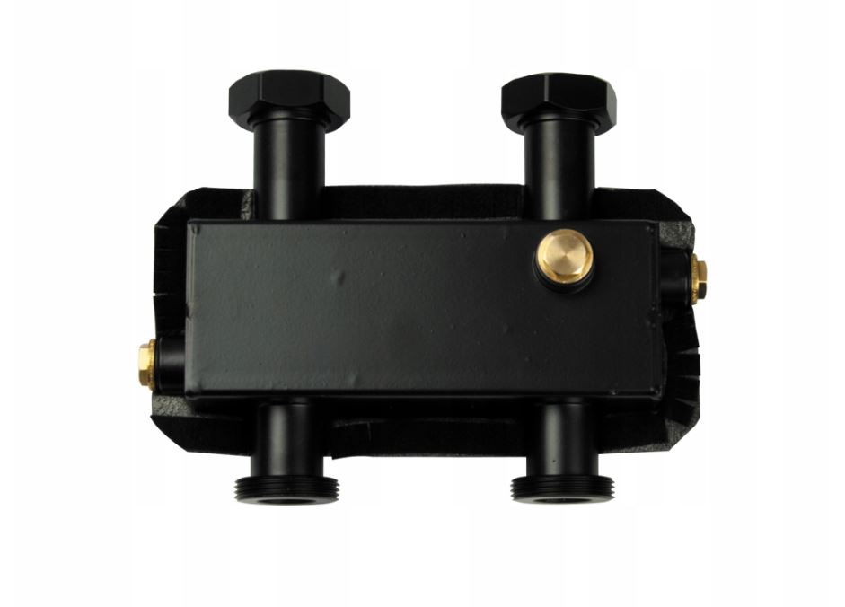 - Sprzęgło zapewnia hydrauliczne odseparowanie obiegów źródła ciepła i odbiornika, minimalizując zakłócenia przepływu i poprawiając stabilność pracy całego układu.