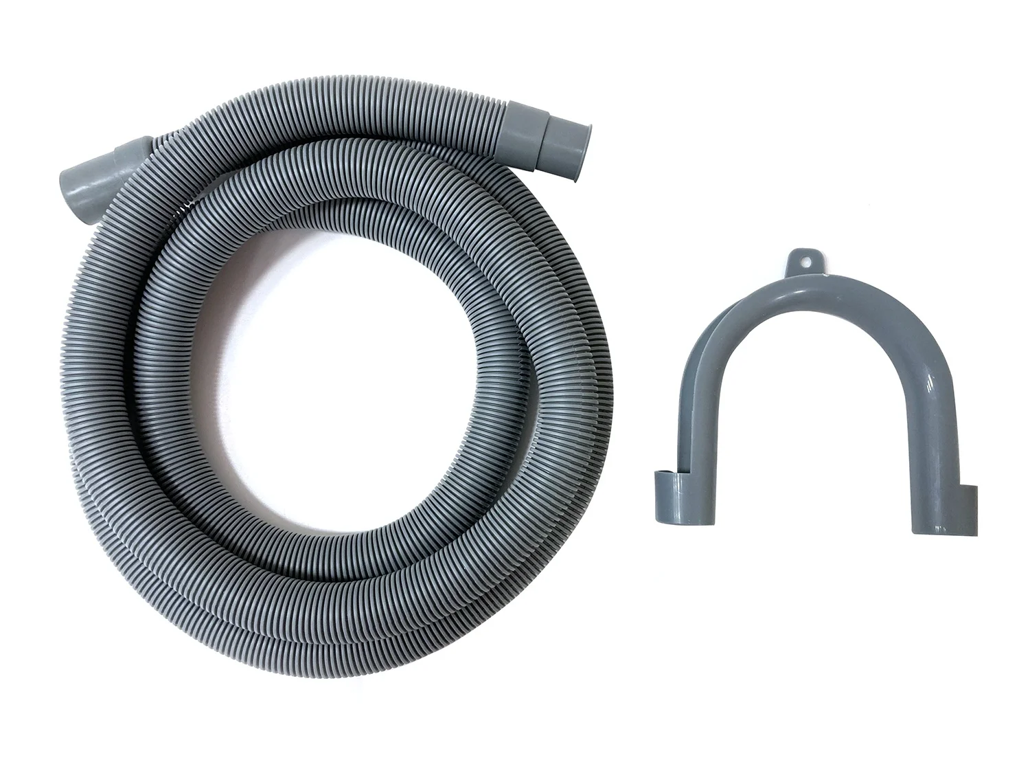 Wąż przeznaczony do odprowadzania wody z pralki lub zmywarki. Wytrzymały i elastyczny, wykonany z tworzywa sztucznego w kolorze szarym, karbowany.