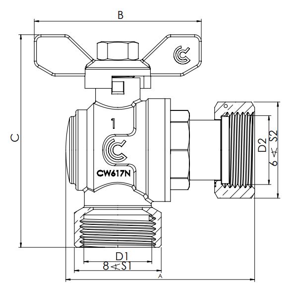 Zawór kulowy kątowy z obrotową nakrętką 3/4" GW/GW Calido S30