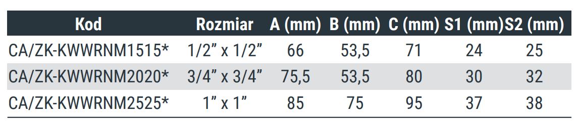 Przyłącza: 1 x gwint wewnętrzny, 1 x gwint wewnętrzny z obrotową nakrętką
