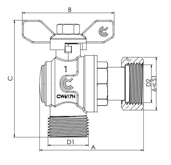 Zawór kulowy kątowy z obrotową nakrętką 3/4" GW/GZ Calido S30