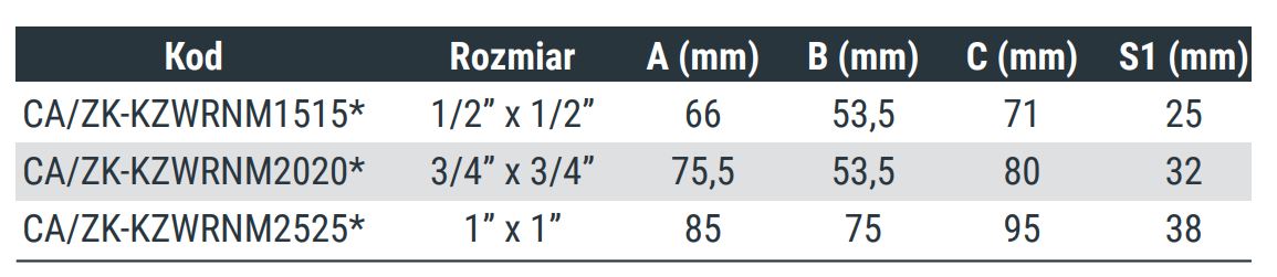 Przyłącza: 1 x gwint zewnętrzny, 1 x gwint wewnętrzny z obrotową nakrętką