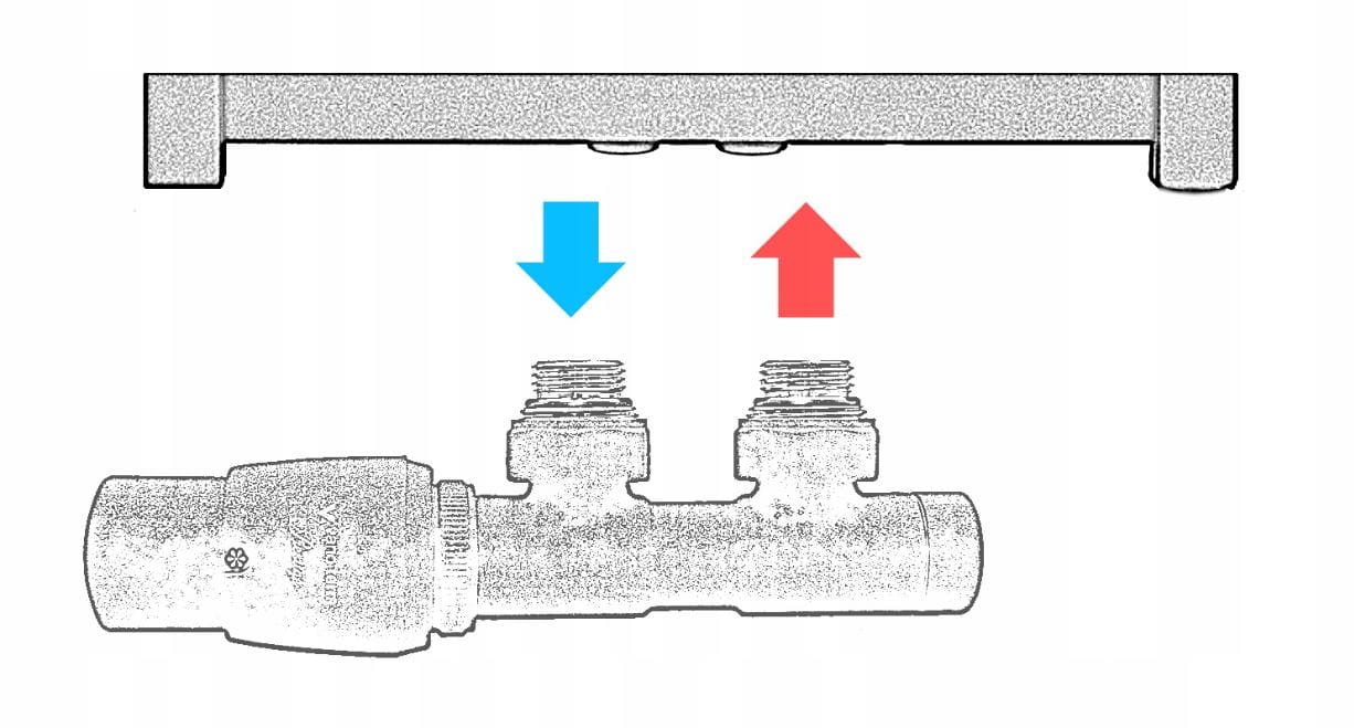 Zawór termostatyczny montujemy na grzejniku centralnego ogrzewania tak by głowica termostatyczną była od strony powrotu czyli dalej od przewodu zasilającego(zgodnie ze schematem poniżej).