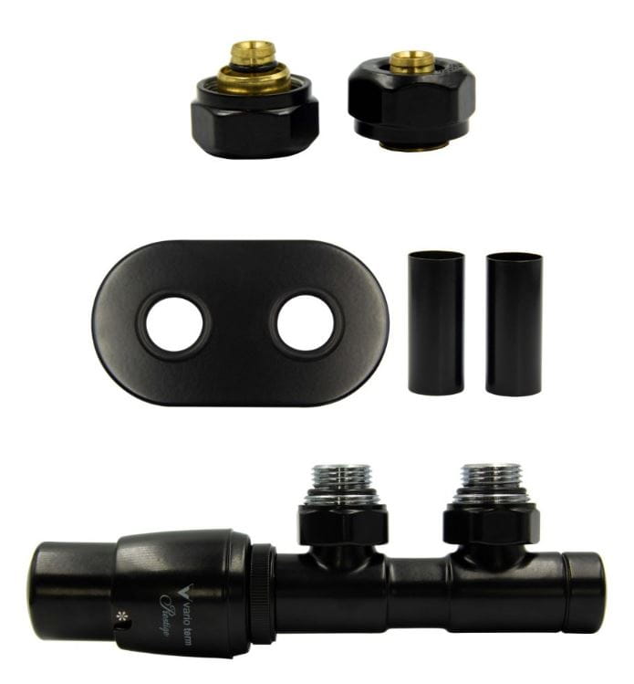 Zawór termostatyczny TWINS lewy czarny mat ALL IN ONE Pex