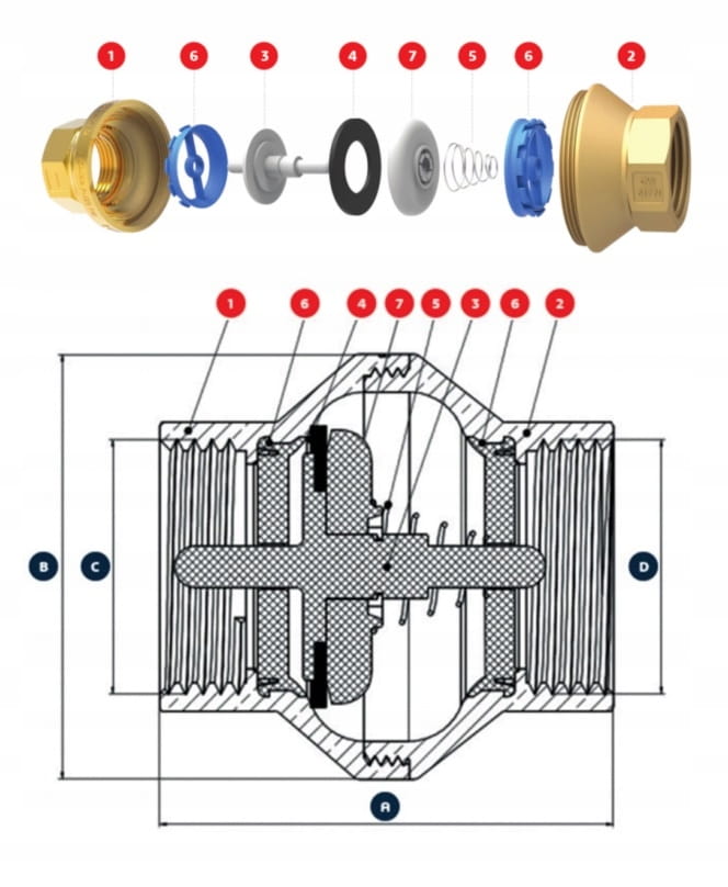 1. Pełny przepływ - unikalna konstrukcja wewnętrzna zaworu zwrotnego PIONIER umożliwia osiągnięcie charakterystyki pełnoprzepływowej (Kv=8,21 m3/h dla zaworu 1”), zachowując jednocześnie kompaktową konstrukcję dla zapewnienia łatwości montażu.