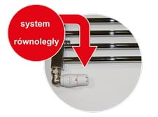 Wystająca głowica spod grzejnika łazienkowego jest często utrudnieniem. Dzięki osiowemu zaworowi mamy możliwość schowania głowicy pod grzejnik.